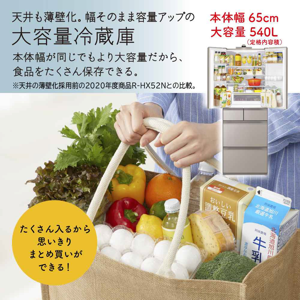 【基本設置料金セット】 冷蔵庫 HXCCシリーズ ライトゴールド R-HXCC54T-XN [幅65cm /540L /6ドア /観音開きタイプ /2023年]