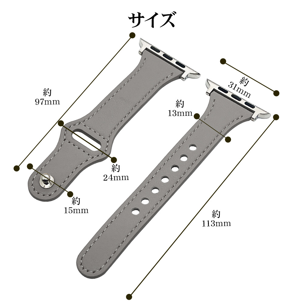 | 商品名 | Apple Watch用バンド Series 8/7/6/5/4/3/SE第2世代/SE 41mm/40mm/38mm ソフトレザー グレー RBAWSL7469GRY |