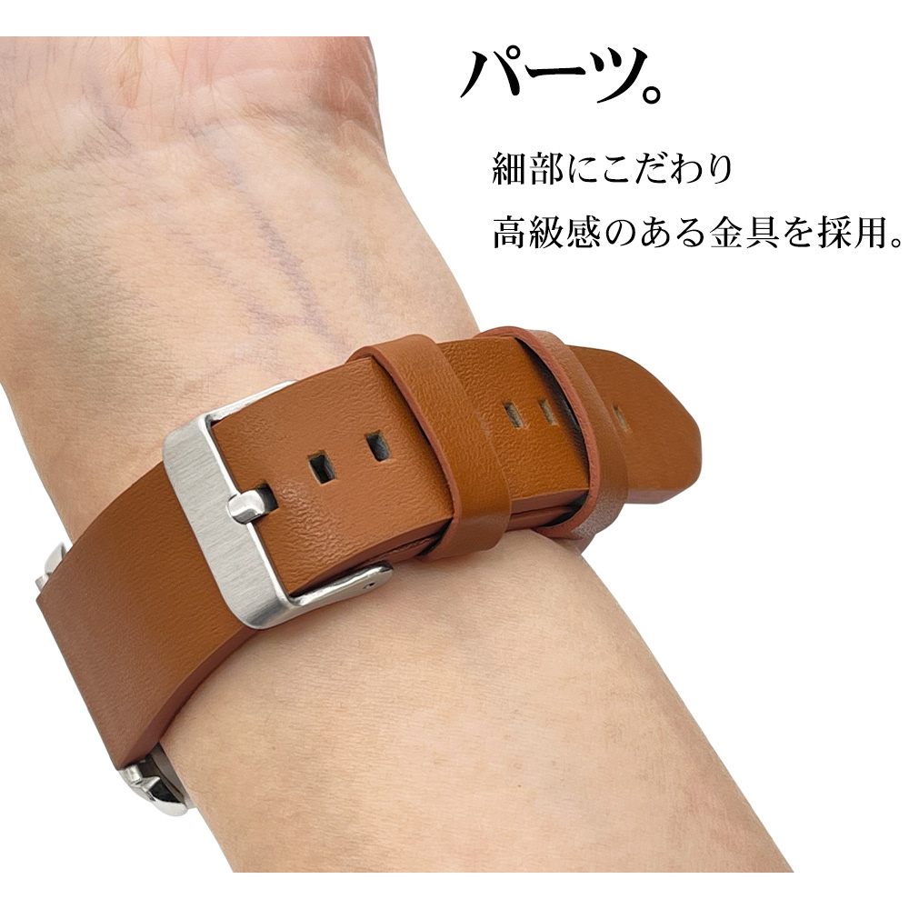使い込むほど腕に馴染む、落ち着きのある本革レザーバンドです。バンドの長さ138〜168mmの間で調節ができます。