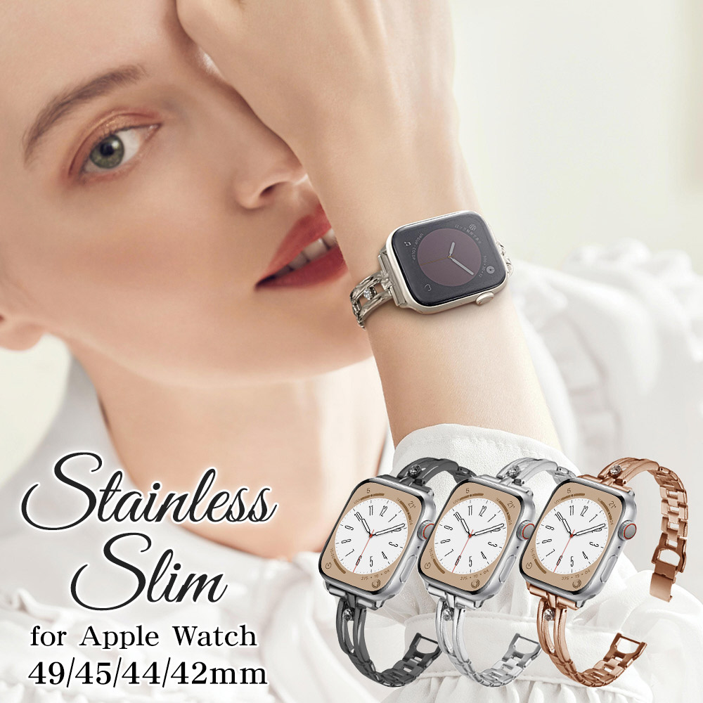 Apple Watch用バンド Ultra/Series 8/7/6/5/4/3/SE第2世代/SE 49mm/45mm/44mm/42mm ステンレス slim ブラック RBAWST7465BK