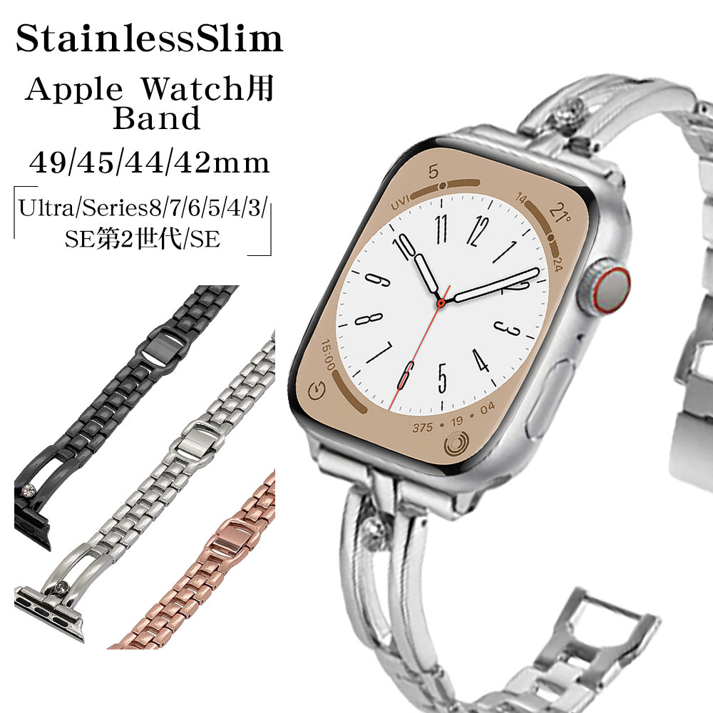 Apple Watch用バンド Ultra/Series 8/7/6/5/4/3/SE第2世代/SE 49mm/45mm/44mm/42mm ステンレス slim シルバー RBAWST7466SV