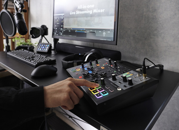 配信を彩る効果音を実現する「SOUND PAD(サウンドパッド)」を6つ装備し、コントローラーアプリ経由のサンプル読み込みのほか、直接録音にも対応。独立したレベルノブも含め場面に合わせた音量での再生が行えます。