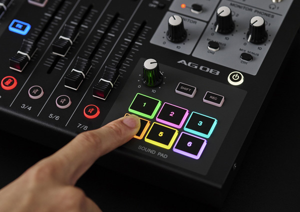 より柔軟な入出力と本体フェーダーにアサイン可能な3系統のUSBオーディオ入出力、拡張フットスイッチ機能、クラス最高のサウンドのために改良された内部回路と追加DSPエフェクトを統合したAG08は、ライブ配信だけでなく、オフラインのオーディオコンテンツ作成もサポートすることが可能です。