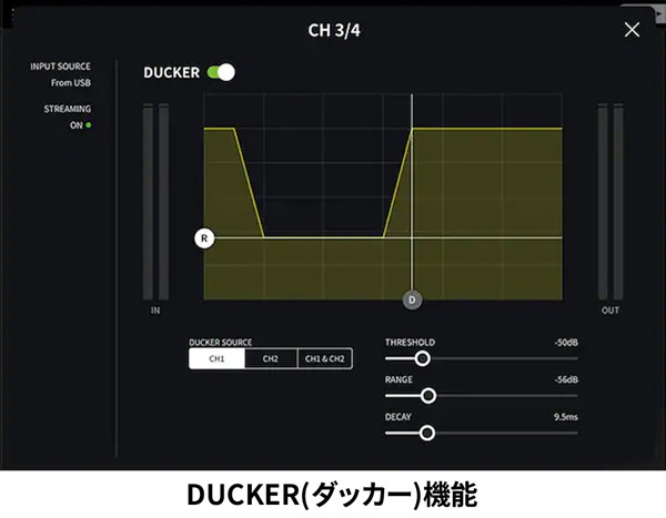 また、マイクで話している間のみBGMを小さく自動調整する「DUCKER(ダッカー)」を新たに装備します。
