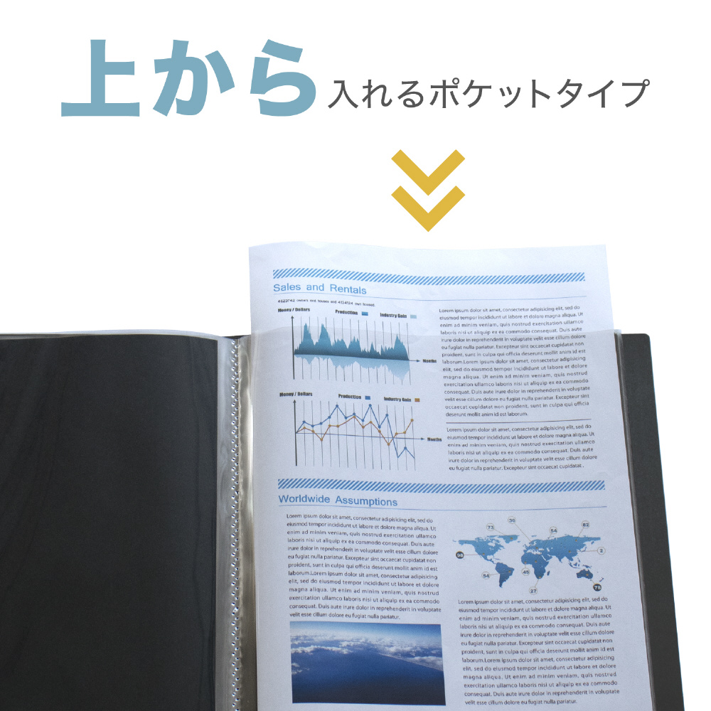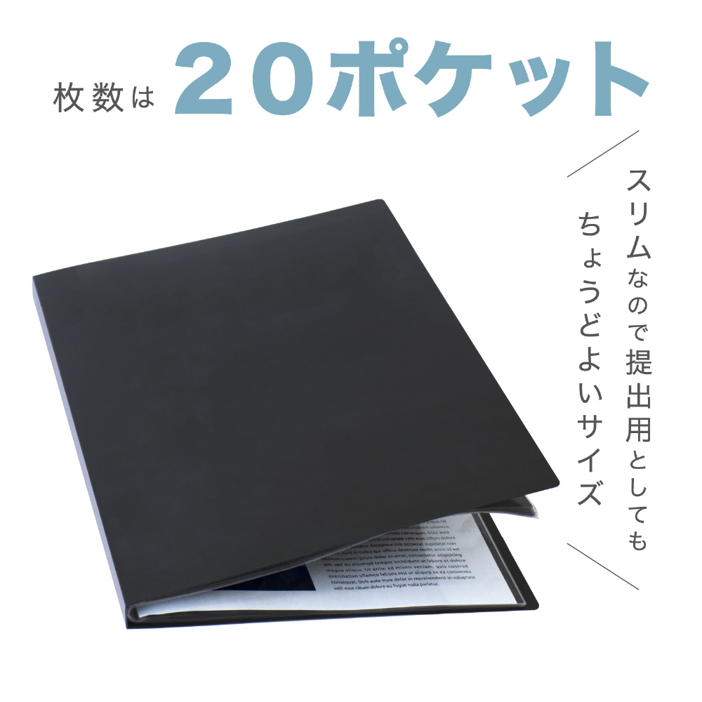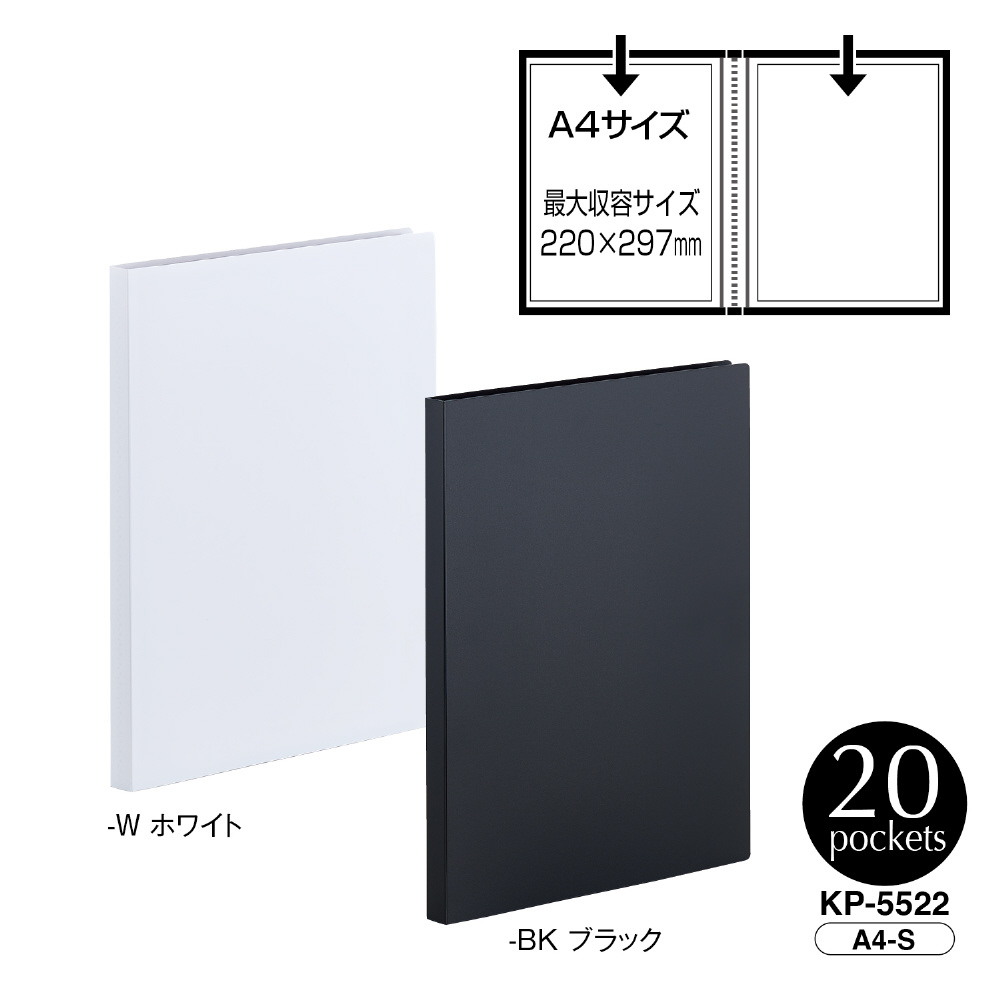 | 仕様1 | 規格 A4-S タテ入れ20ポケット溶着式ポケット(黒台紙入) |