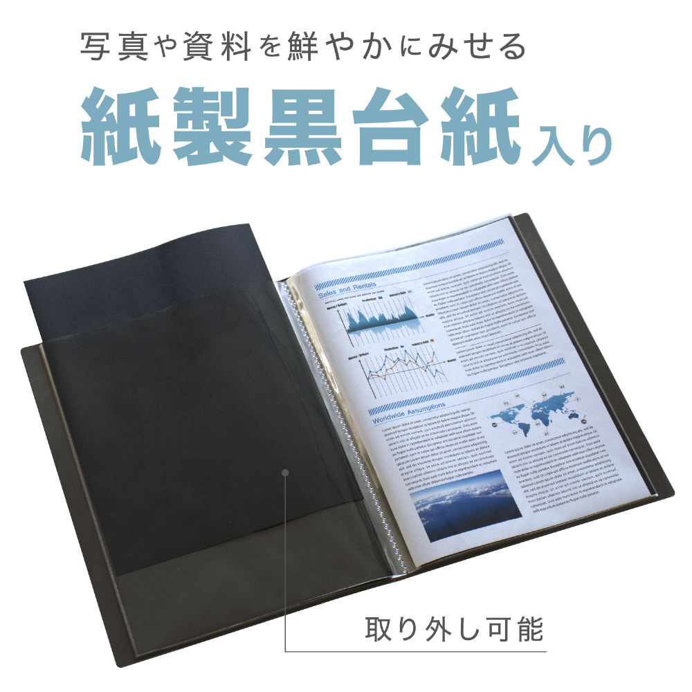 デジタルプリントや資料を鮮やかに見せる高透明ポケット、黒台紙付きのクリヤーファイル
