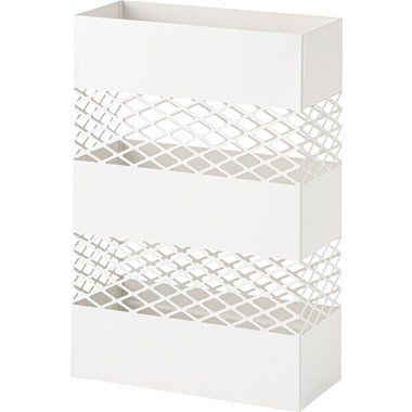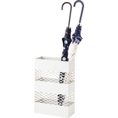 ■大小様々な型抜きデザインを施した、シンプルながらインテリア性の高い傘立て。本体重量が2kgとほどよく重量のある仕様なので、安定感も問題なしです。底面には水受けトレイが付いているので傘の水滴が漏れ出す心配がなく、お手入れも簡単です。ご自宅でのご使用はもちろん、オフィスやエントランスの傘立てとしてのご利用にも最適です。