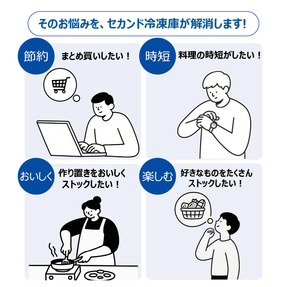 | 仕様1 | まとめ買いにぴったりな大容量冷凍庫 |