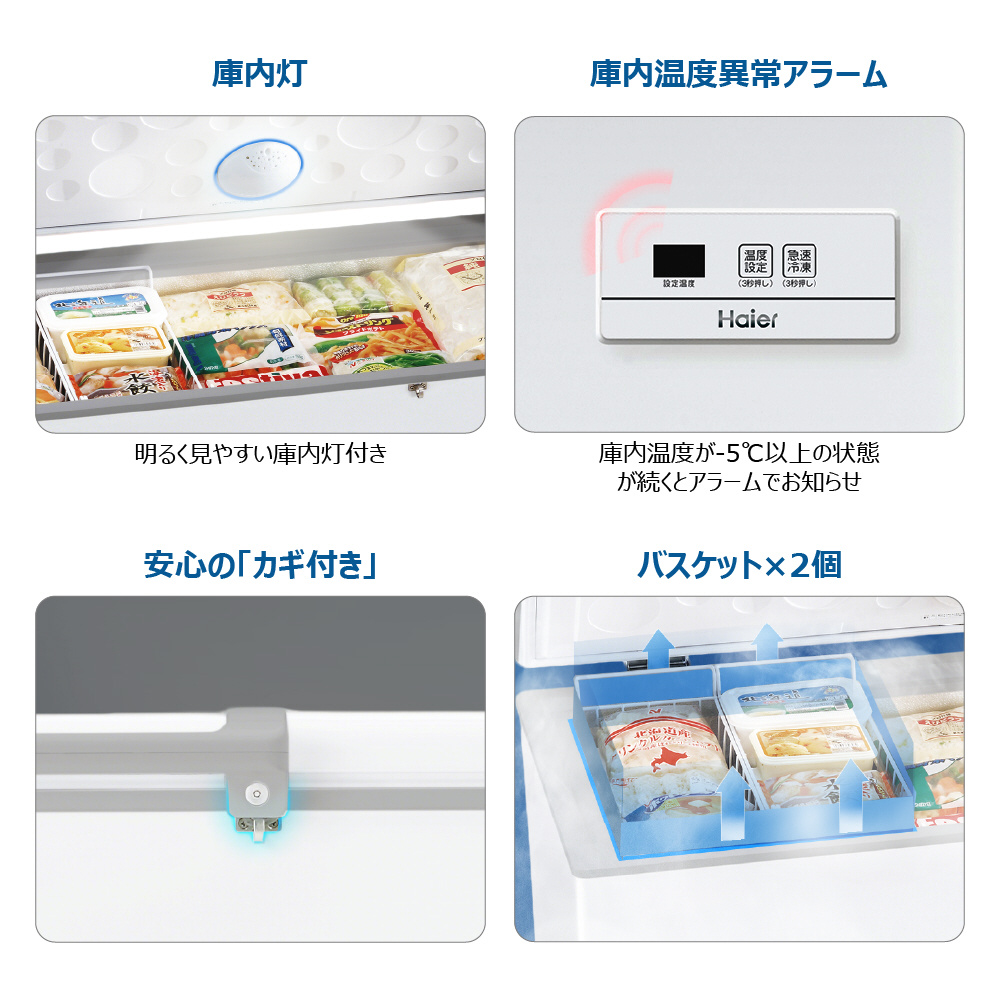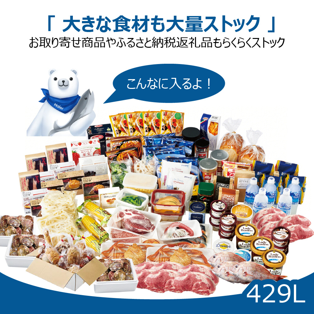 商品名 | 冷凍庫 ハイアール ホワイト JF-MNC429B(W) [幅141cm /429L /1ドア /上開き] |