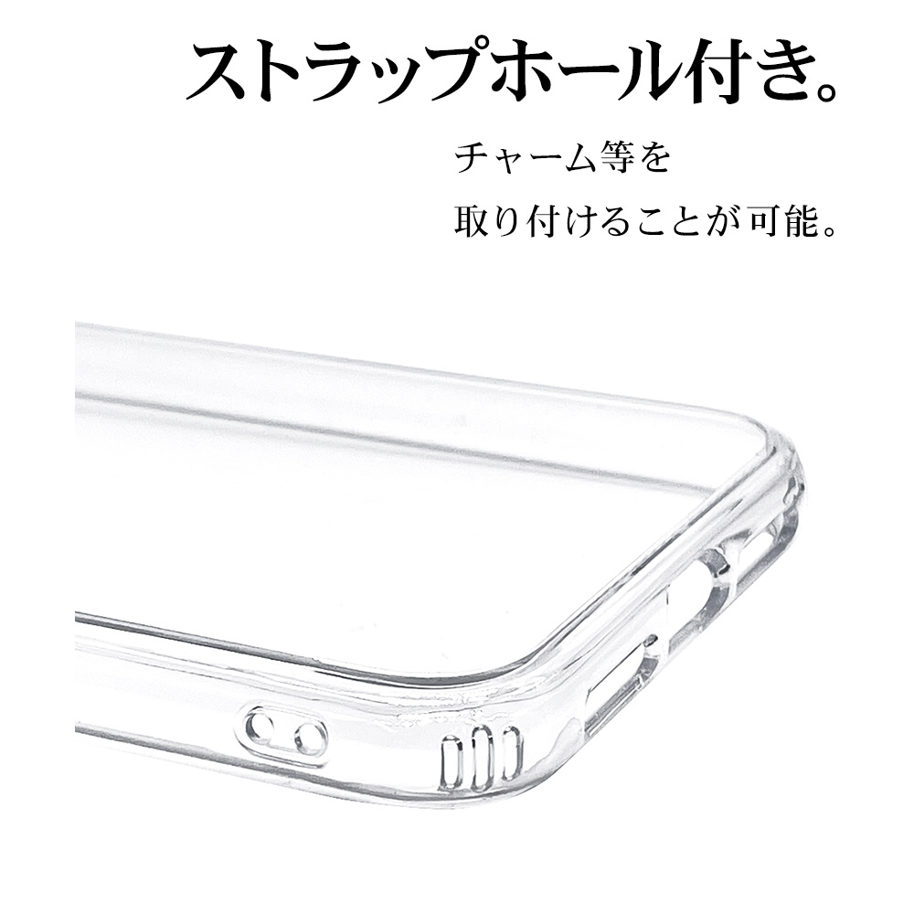 ケースを装着したままカメラ機能や充電コネクターの接続、タッチパネル操作が可能です。 また各種ボタンの操作も使用可能です。チャーム等を取り付けることが可能な「ストラップホール」付き。