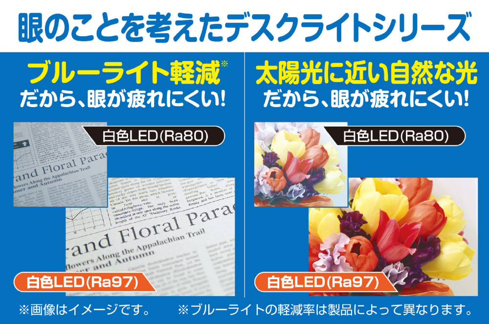 ブルーライト軽減&太陽光に近い自然な光で目が疲れにくい