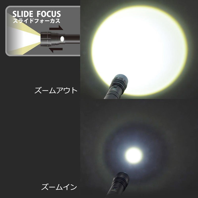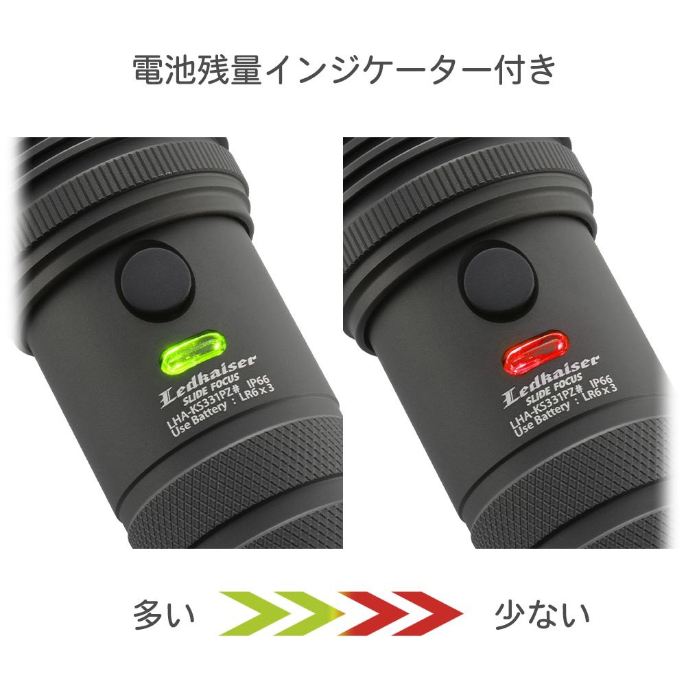 LEDズームライトレッドカイザースライドフォーカス1100ルーメン LHA-KS331PZ-K2 [LED /単3乾電池×3 /防水対応]