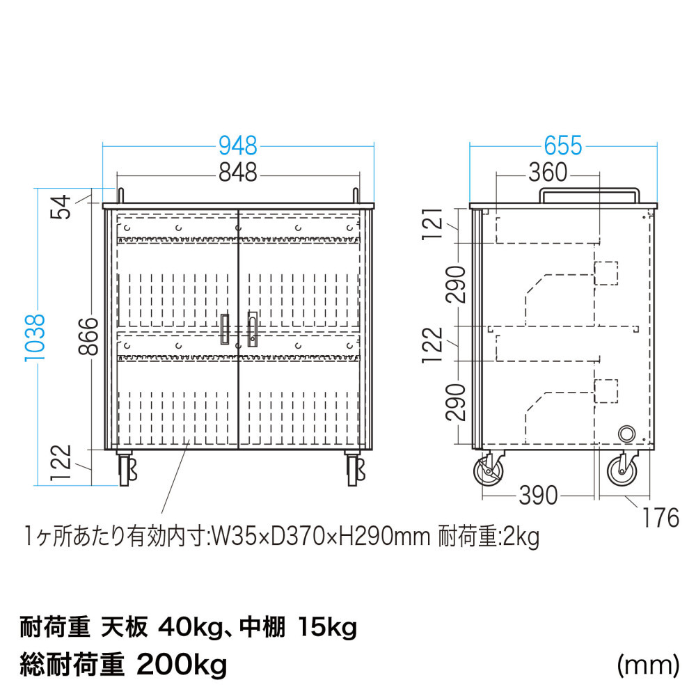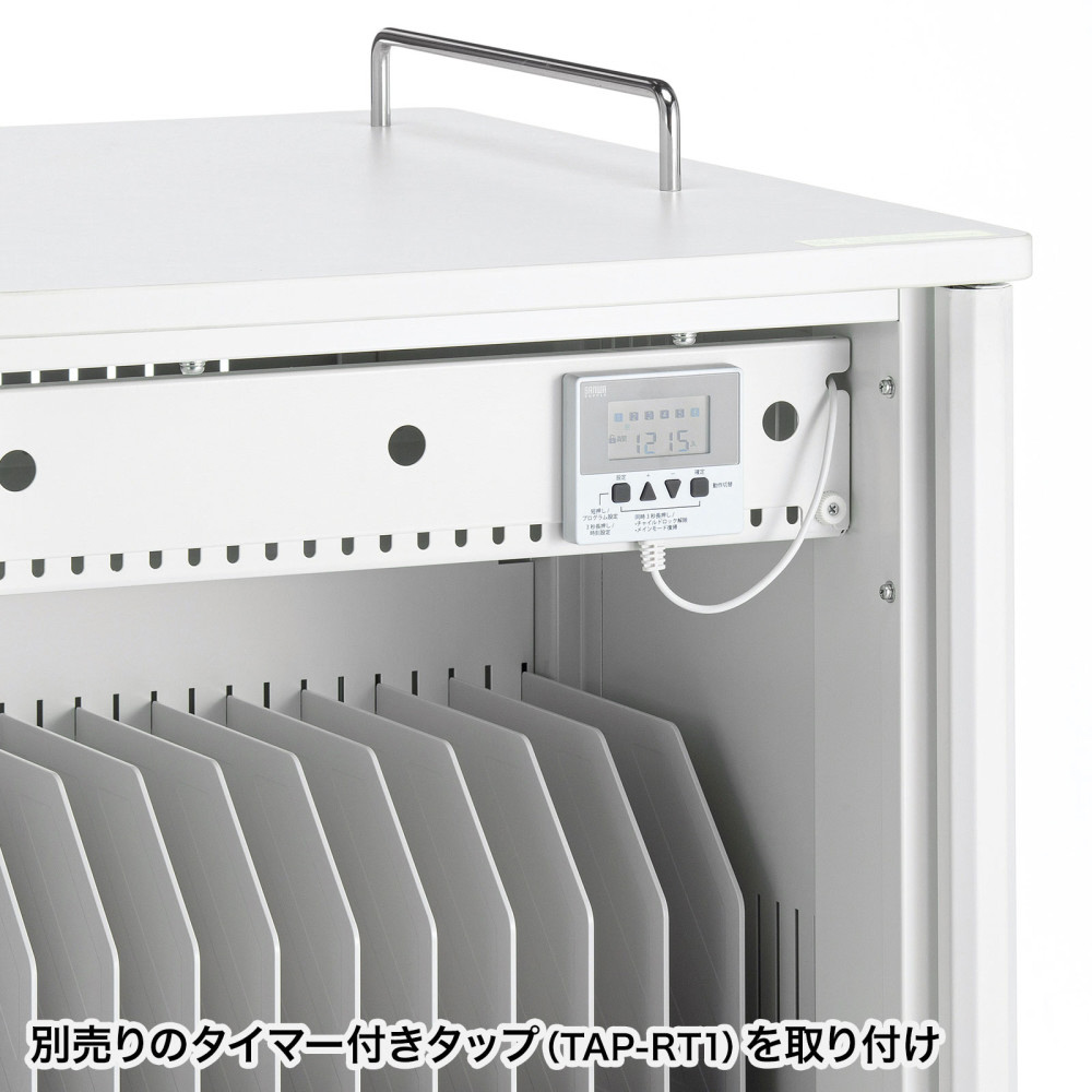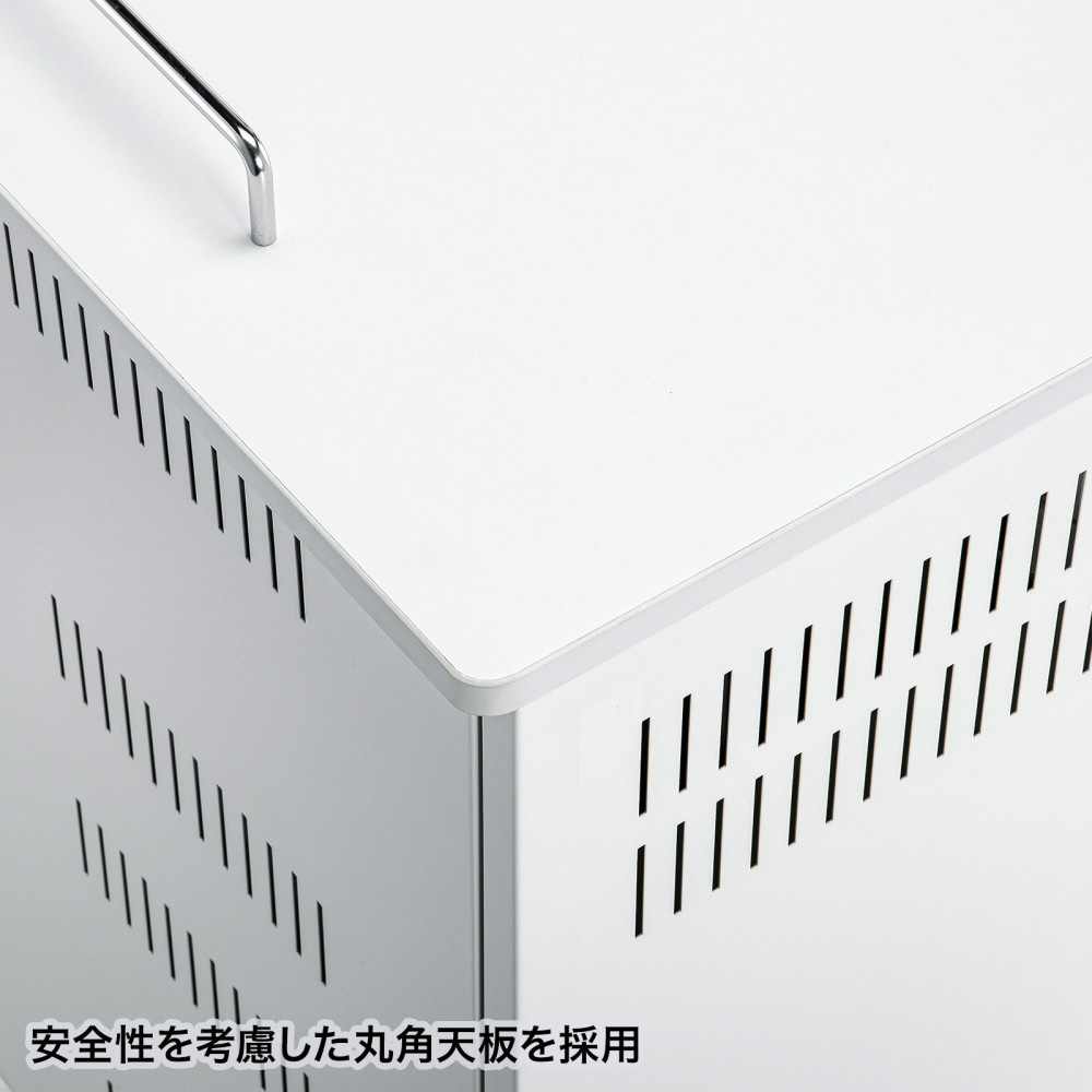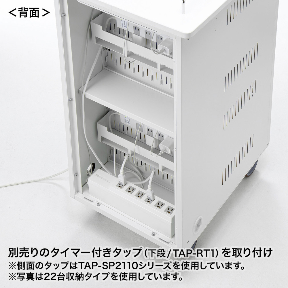 安全設計で配線もしやすい。14インチまでのタブレットを一括収納できる保管庫。窓なしタイプ。