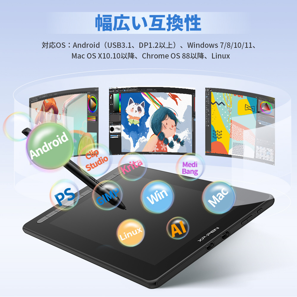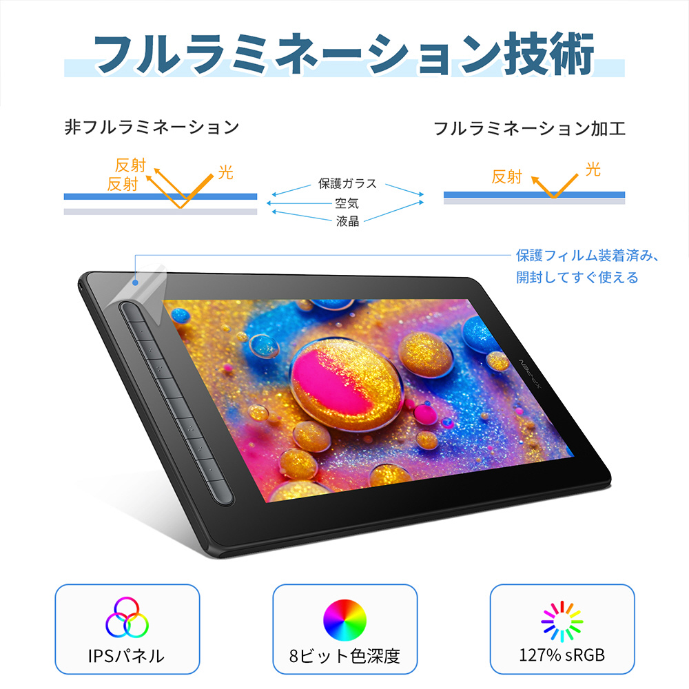 15.4型フルHD高品質ディスプレイを搭載した4色のカラーバリエーションがある液晶タブレット