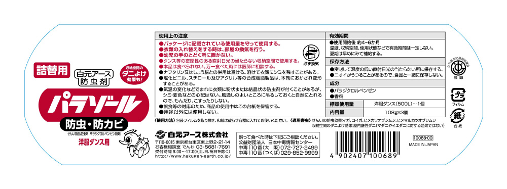 | 商品名 | 洋服ダンス用パラゾール 詰替 3個入 |