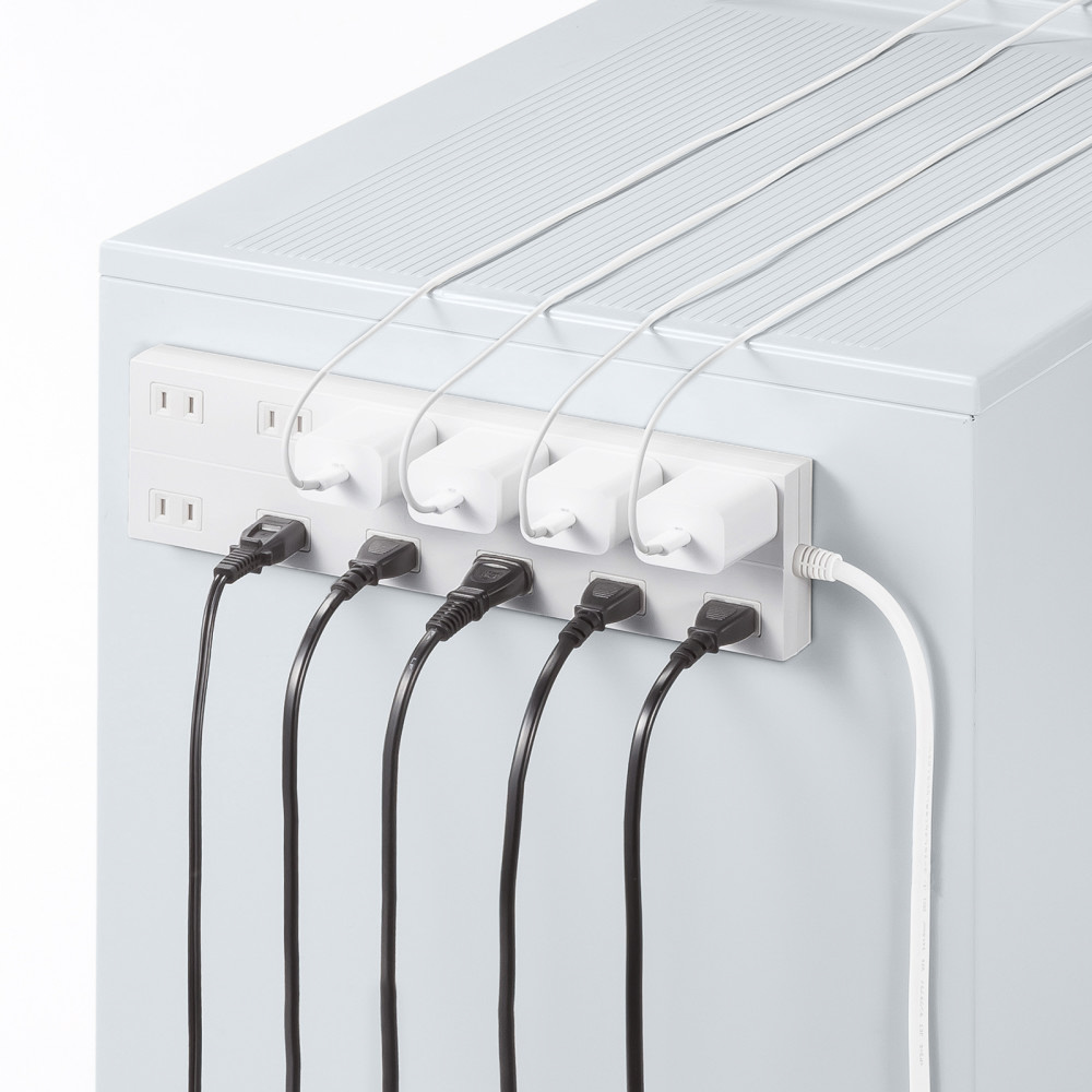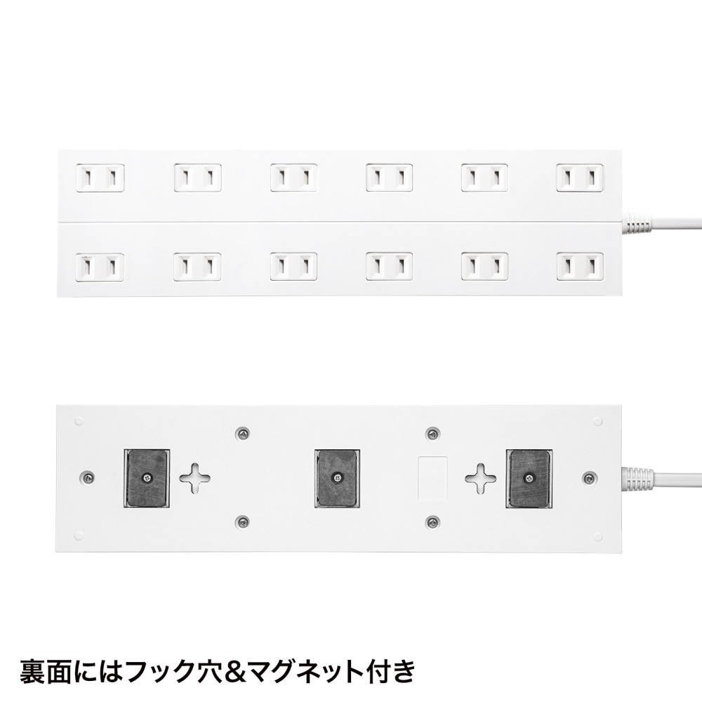 小型ACアダプタが12個接続できる、12個口マグネット付きタップ。