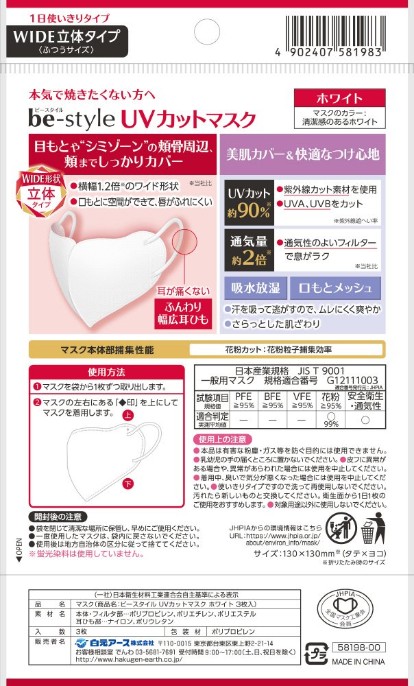 | 型番 | ビースタイルUVカットマスクホワイト |