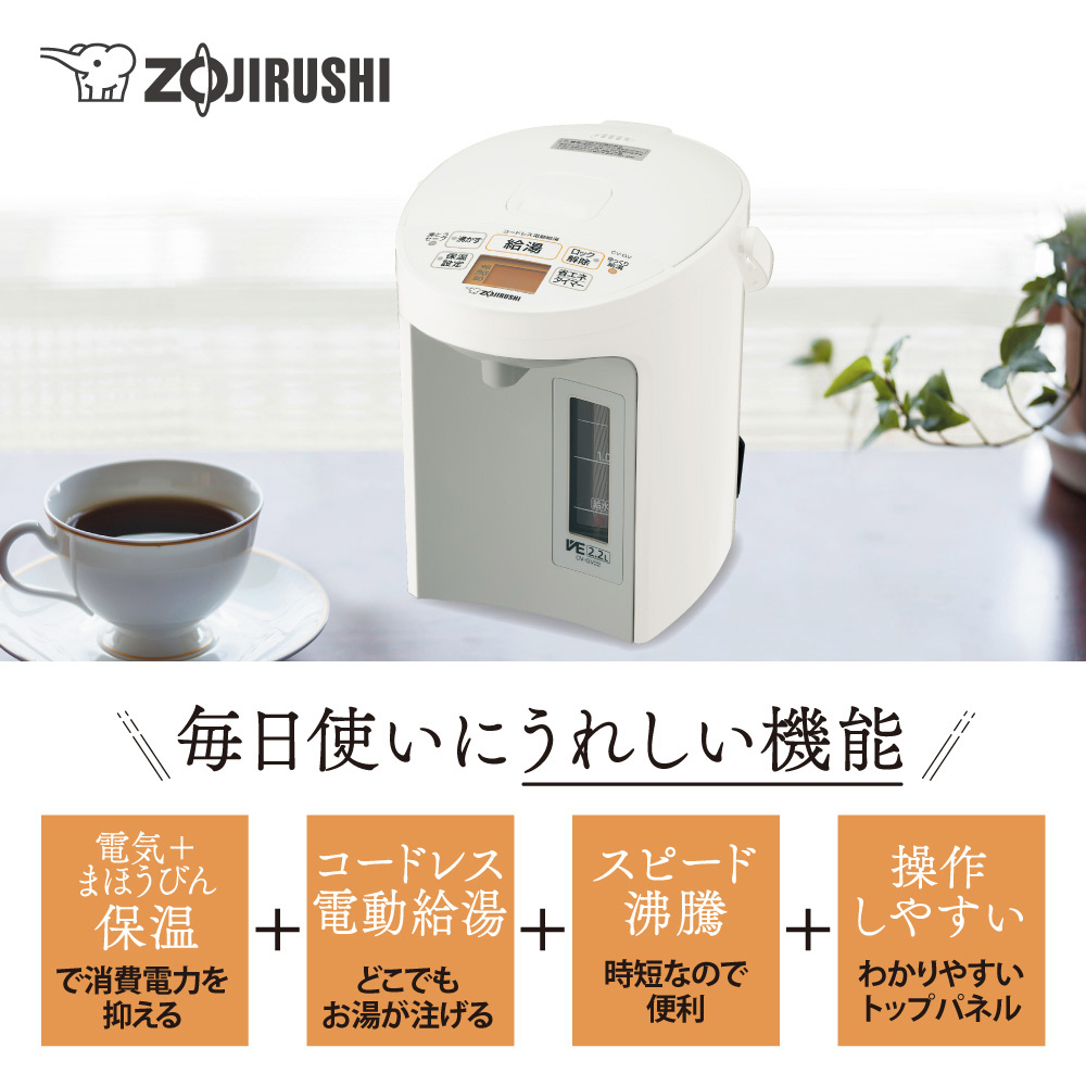 VE電気まほうびん 優湯生 ホワイト CV-GV22 [2.2L /蒸気セーブ機能つき]