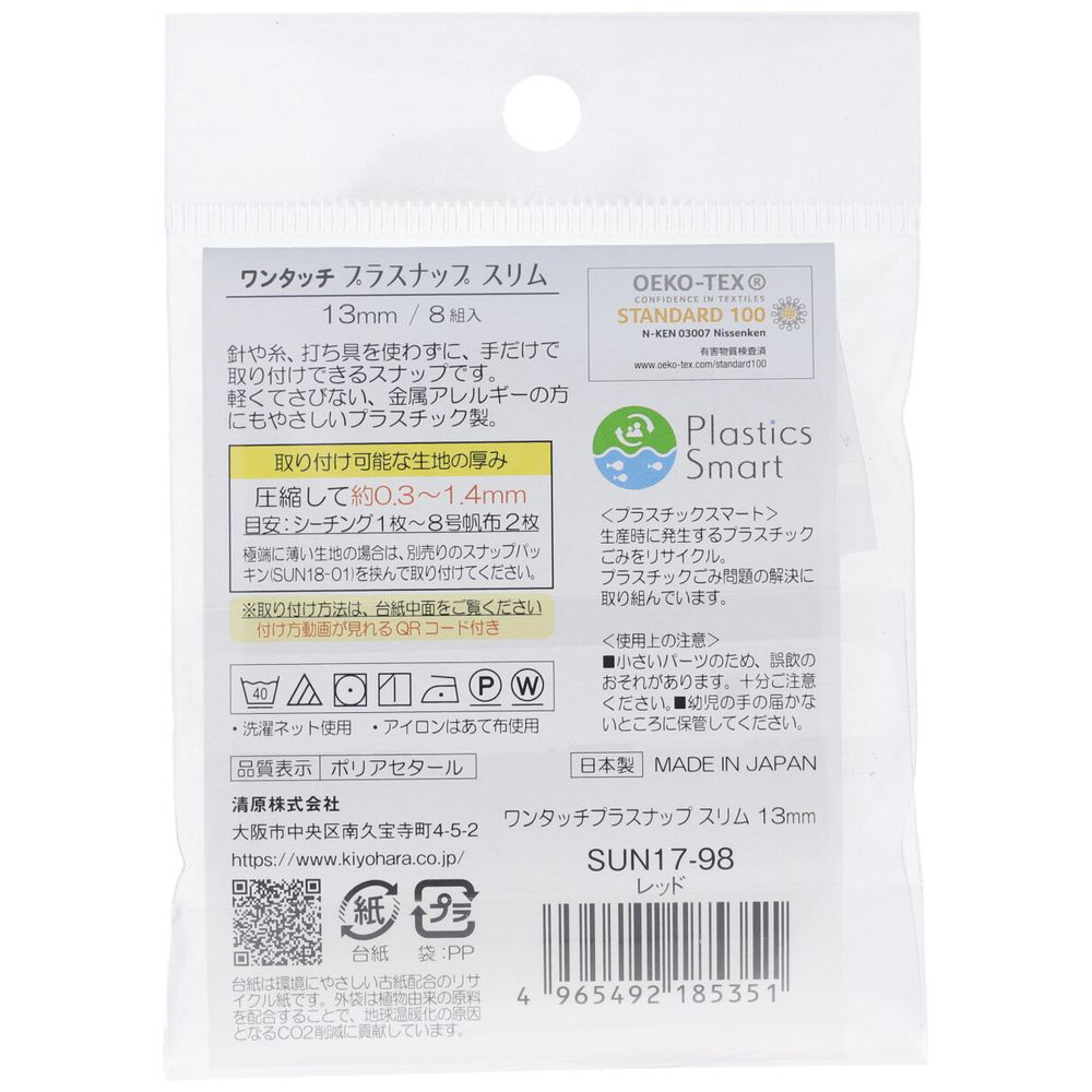 | 商品名 | ワンタッチプラスナップスリム(13mm) サンコッコー レッド SUN17-98 |