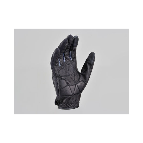 手の甲側は通気性とストレッチ性に優れたメッシュ素材、手の平側は全面パンチング加工を施した本革を採用。