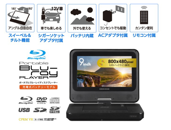 ポータブルブルーレイディスクプレーヤー ブラック GH-PBD9AC-BK [9V型]