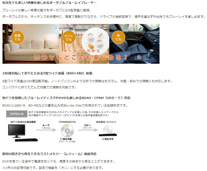 9型ポータブルブルーレイディスクプレーヤー