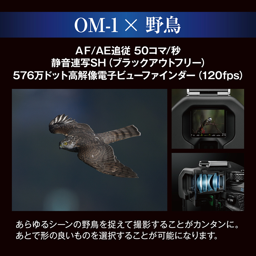 「OM SYSTEM OM-1」は、新開発のデバイスと最先端のデジタル技術を結集し、センサーサイズの常識を覆す高画質を実現したほか、従来機種を大きく上回るAFや連写性能など、基本性能も大幅に進化。