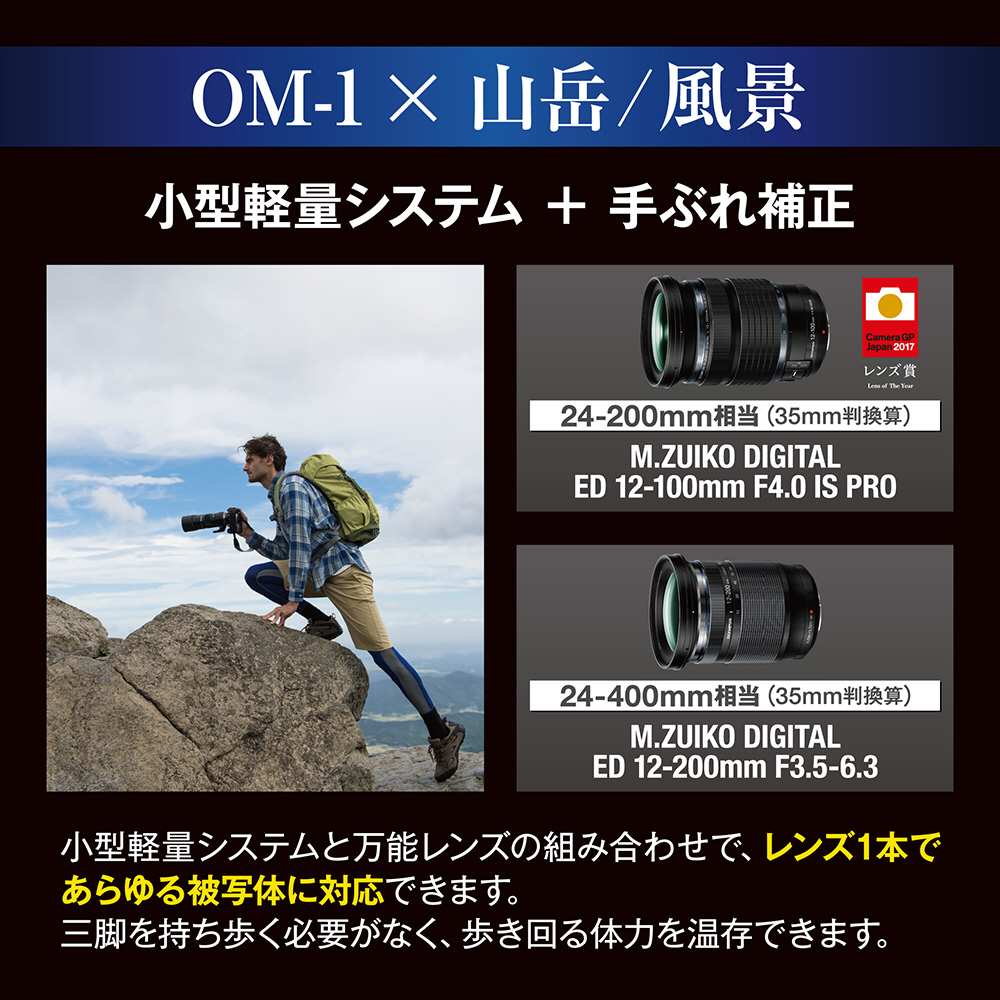高い機動力により、高画質、高性能かつ一眼カメラならではの多彩な映像表現を誰でも手軽に実現することができる、「OM SYSTEM」が提供する次世代のマイクロフォーサーズカメラ。
