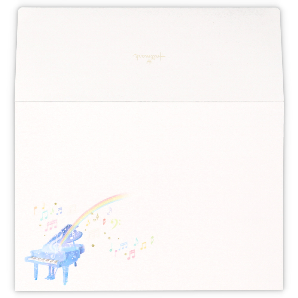 ピアノから流れる美しい音色が虹となり溢れる様子を描いたレターパッド用封筒