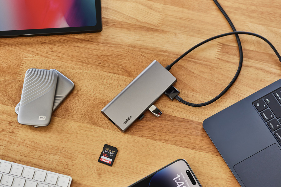 このUSB-C 7-in-1マルチポート アダプターを使用すると、強力なワークステーションをどこにでも作成できます。1つのUSB-Cポートを介して、4Kビデオ、電源、周辺機器、インターネットなどをMacBook、Chromebook、ノートPCに接続します。
