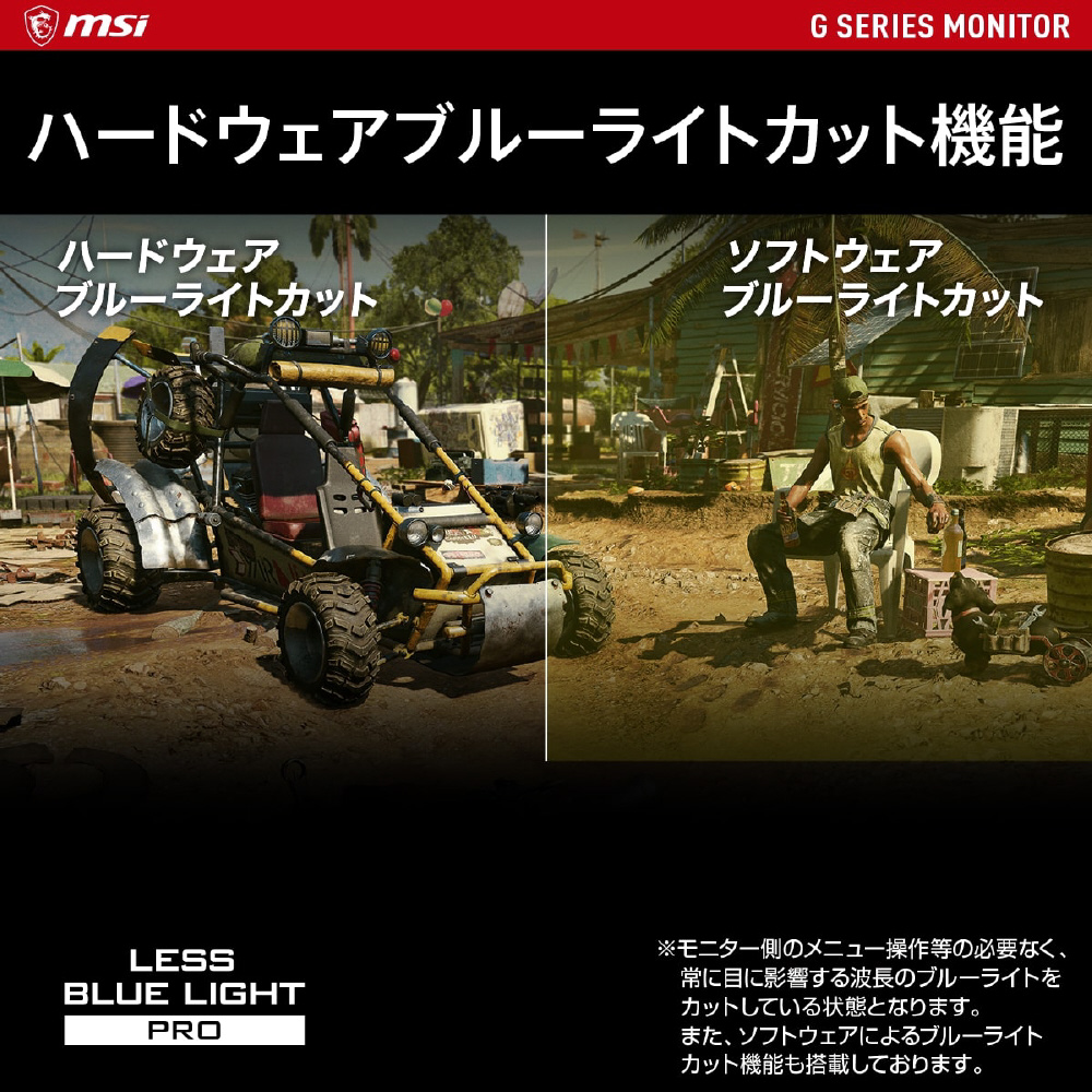 | 仕様2 | [対応機能] アンチフリッカー アンチモーションブラー ハードウェアブルーライトカット ※モニターの設定メニューには従来のブルーライトカット機能も搭載しております ナイトビジョン G-SYNC Compatible HDR PIP / PBP |