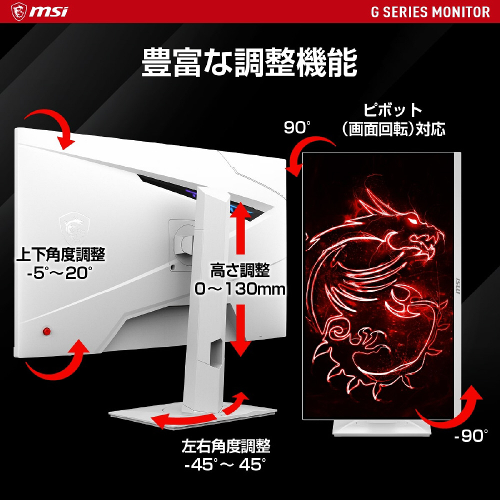 清潔感あふれたデザインを採用し、ゲーミング環境を白色で統一したい方にもお勧めなハイスペックゲーミングモニターです