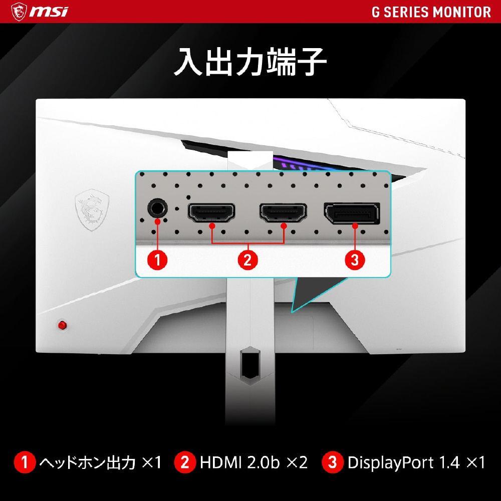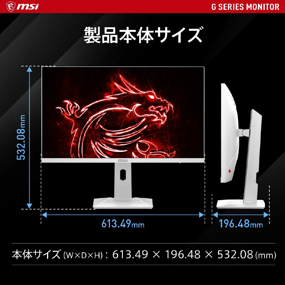 「G274QRFW」はMSIとしては国内初となる本体カラーに清潔感に溢れるホワイトを採用したスタイリッシュなゲーミングモニターでPC本体・ゲーミングデバイス・インテリアなど、同じ色で統一感を演出したい方にお勧めのハイスペックモデルです。