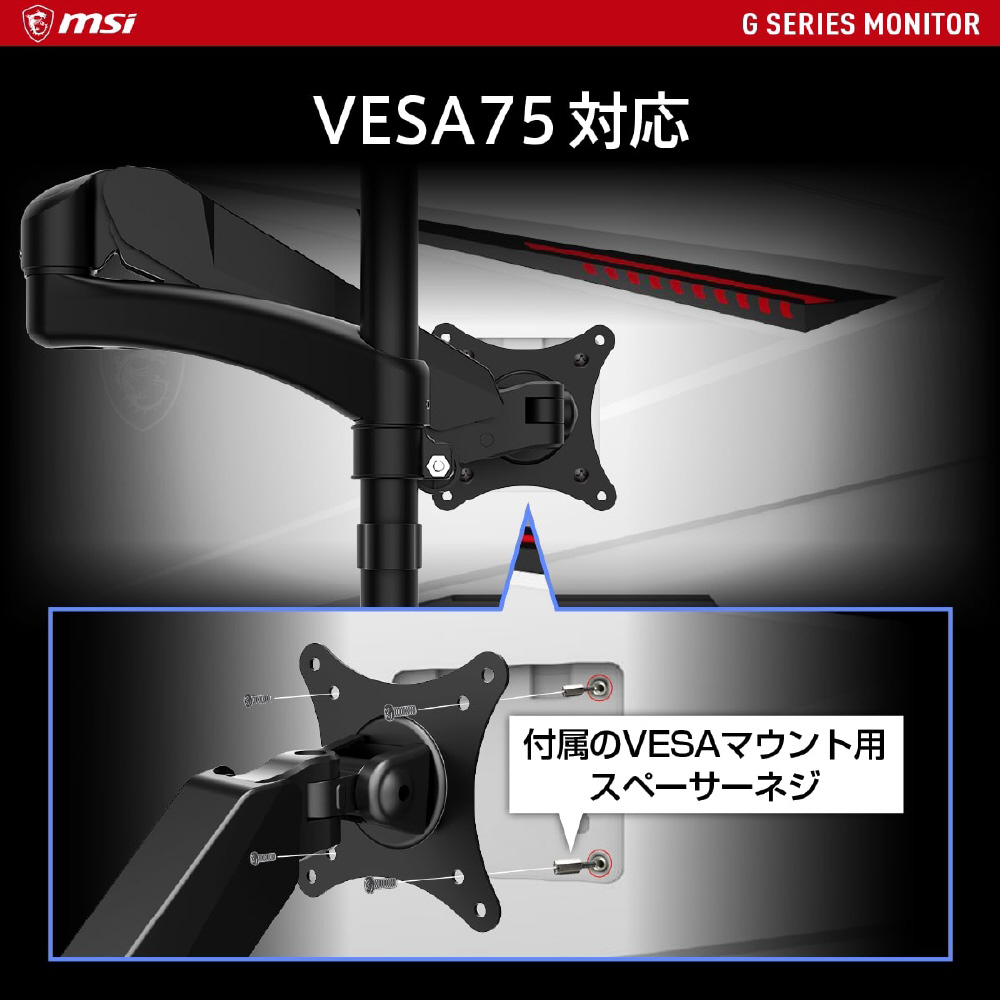 | 対応VESA規格 | VESA75(付属のスペーサーネジにて対応) |