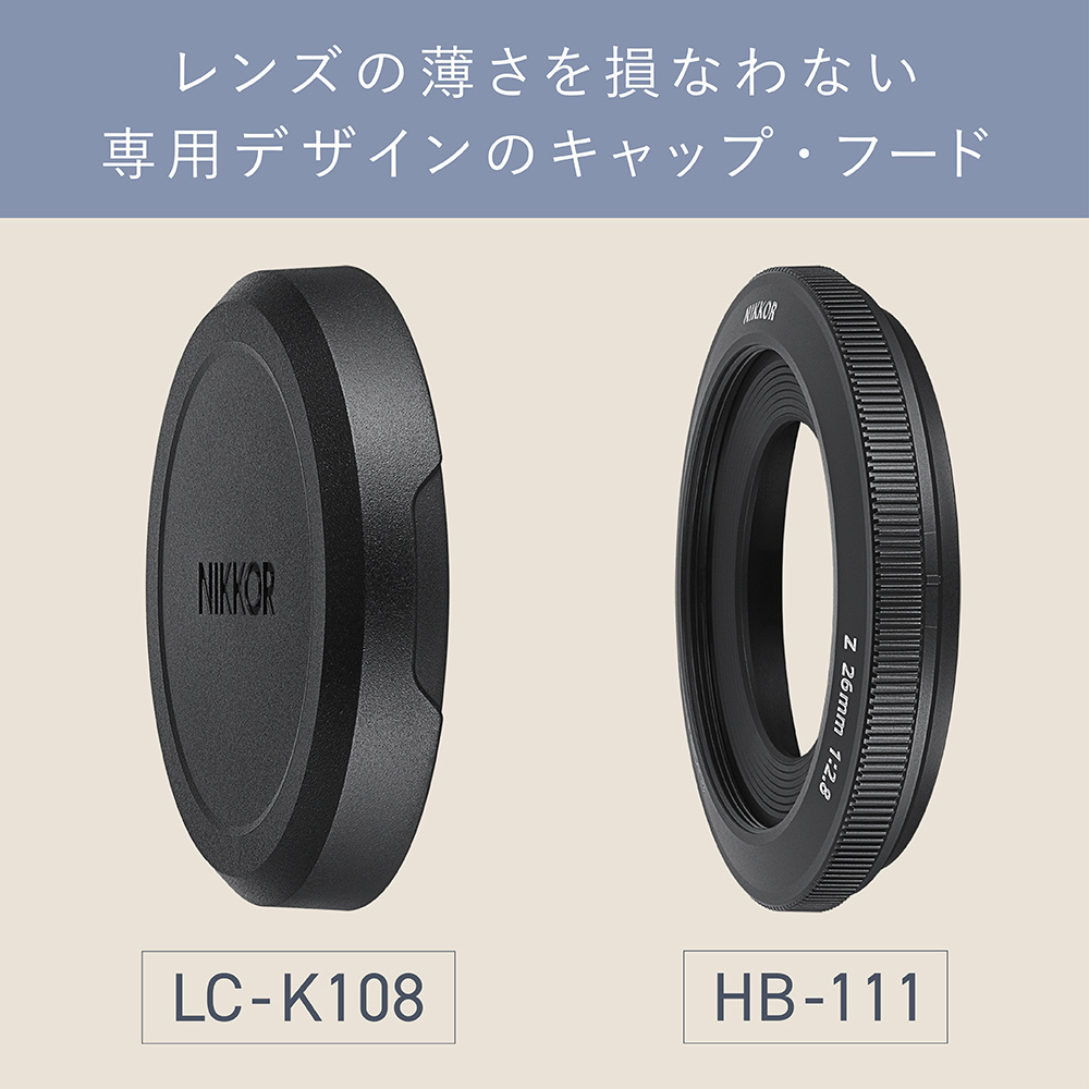 | 付属品 | レンズキャップ LC-K108(フロントキャップ)、レンズキャップ LF-N1(リアキャップ)、レンズフード HB-111 |