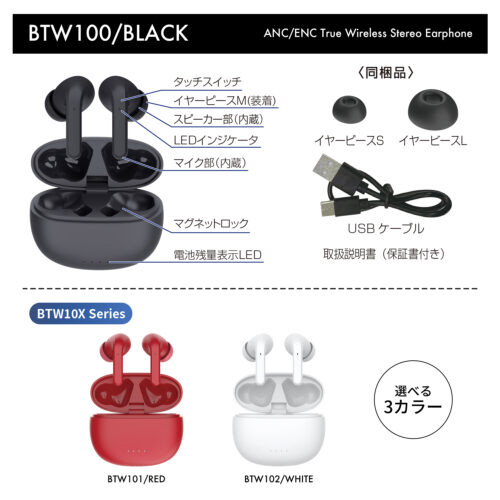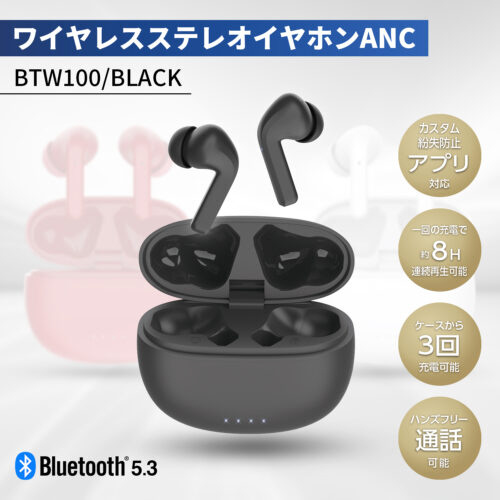 完全ワイヤレスイヤホン ブラック BTW100 [ワイヤレス(左右分離) /ノイズキャンセリング対応 /Bluetooth対応]