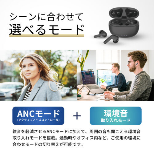 アクティブノイズコントロールと環境音取り入れモードを搭載したBluetoothステレオイヤホンです。