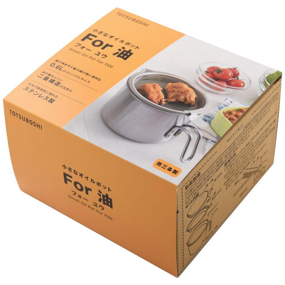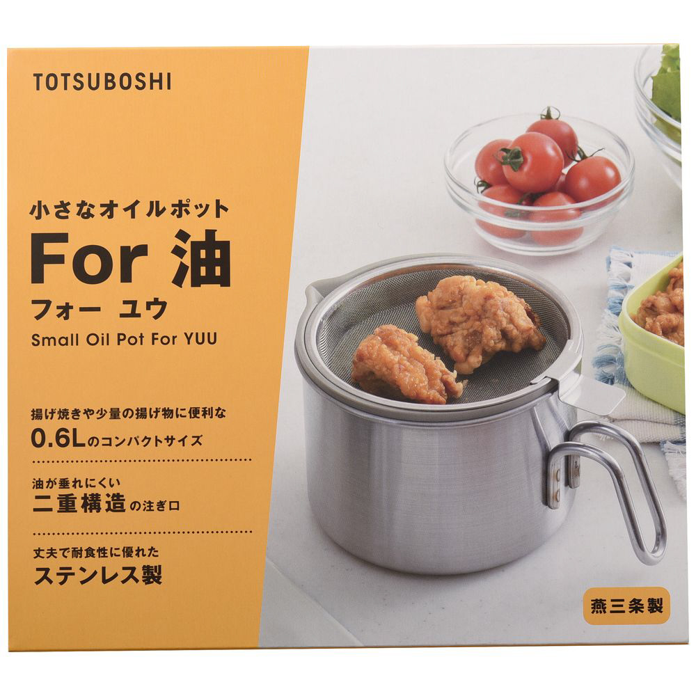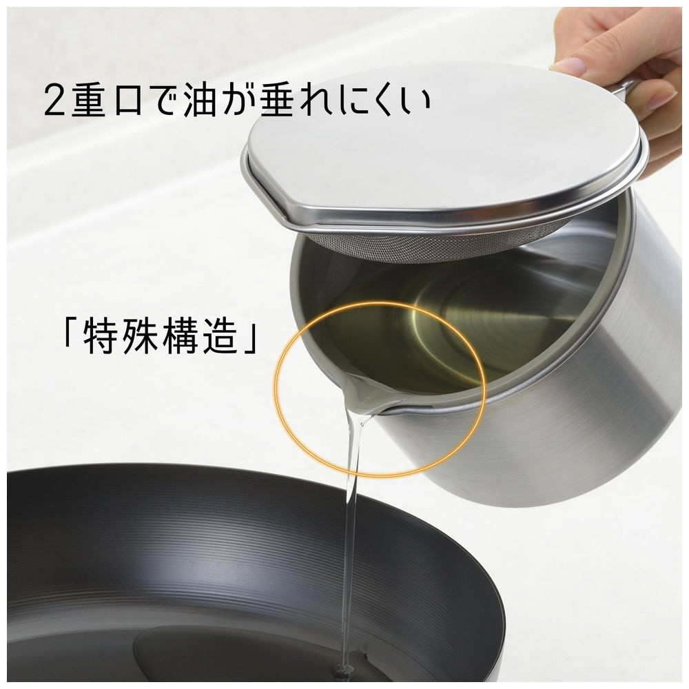 ■揚げ焼きや少量の揚げ物シーンに便利な適正容量600mlサイズの小型の油ポットです。