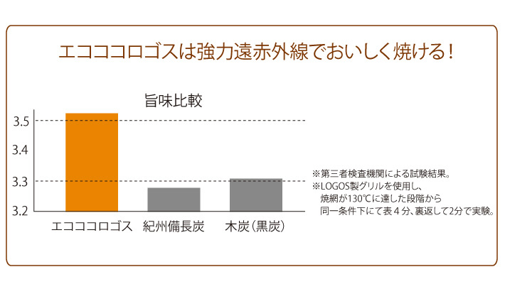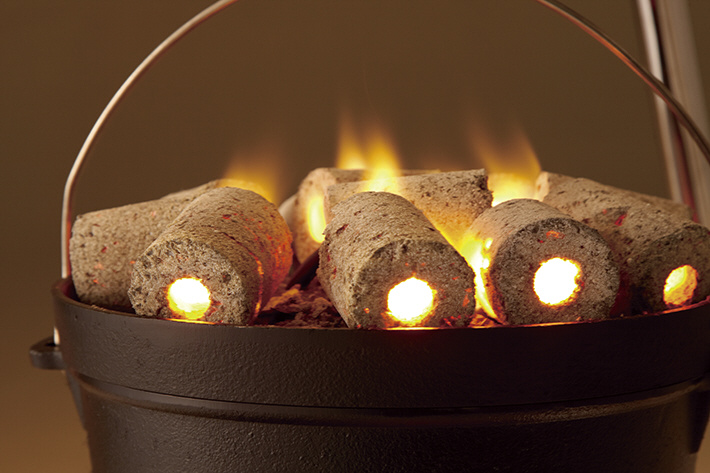 着火剤がコーティングされたLOGOS独自の成型炭。