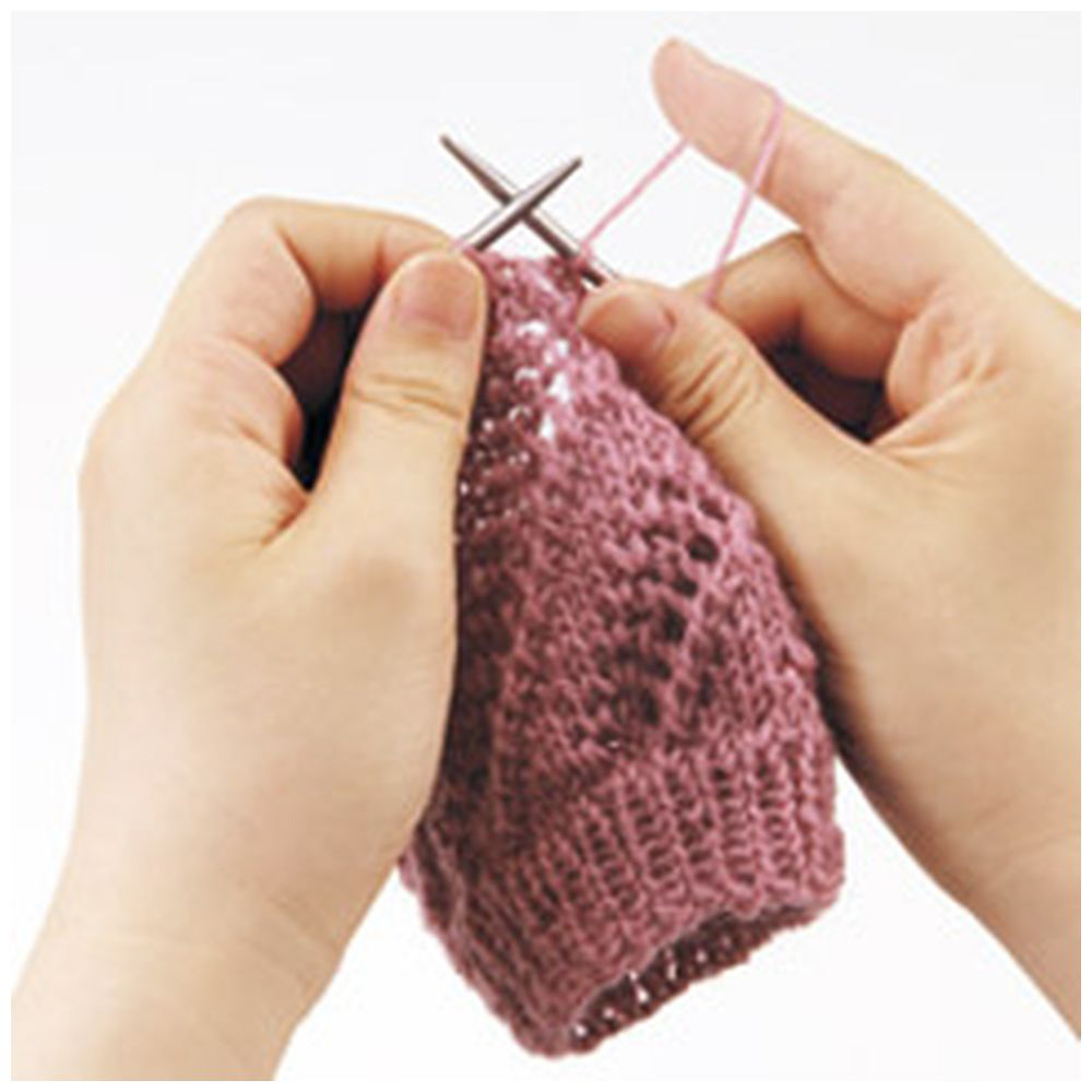 ■針の持ち替えが無いので、“編み込み”や“透かし編み”などの模様編みも間違えにくく、キレイに仕上がります。