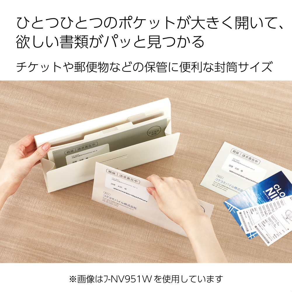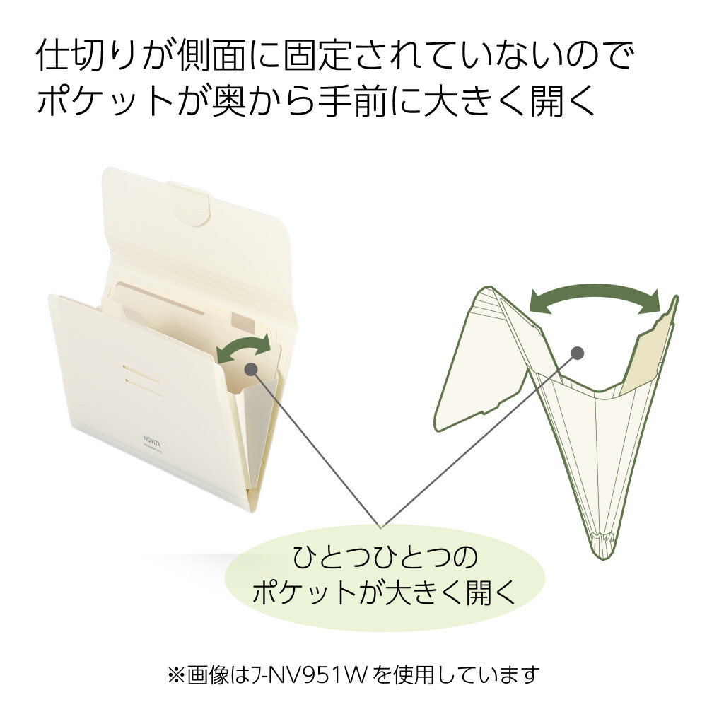 ●開きたいポケットのみを大きく開くことができる構造で、収容した書類が出し入れしやすく探しやすいです。