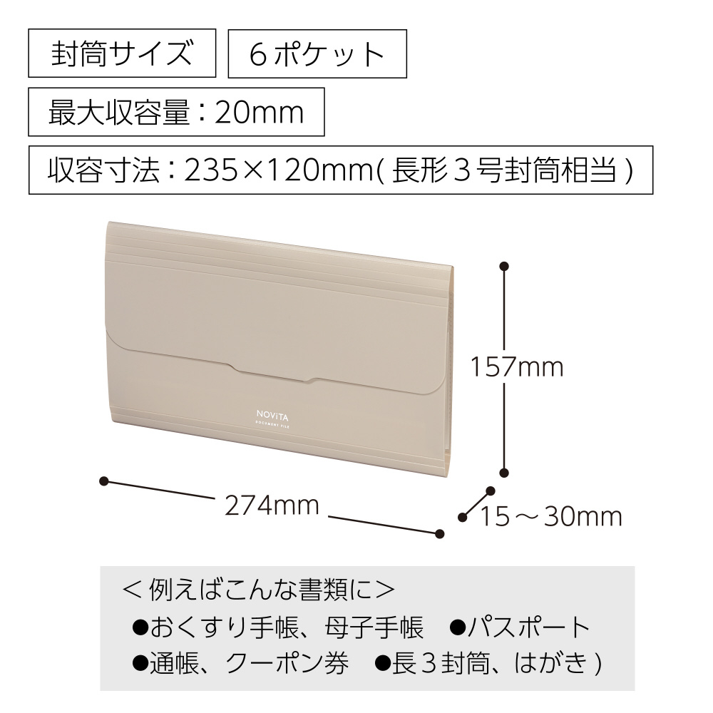 商品名 書類ファイル<ノビータ>封筒・6P サンドベージュ