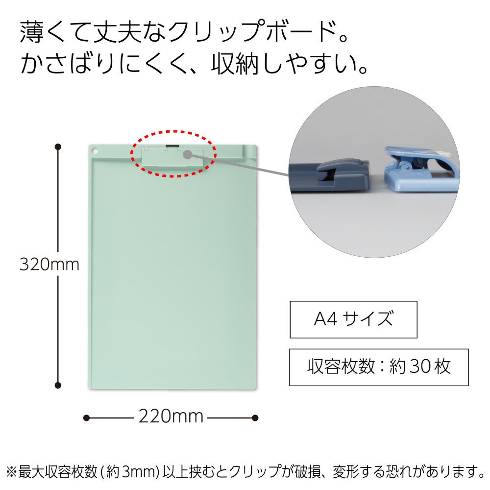 ●最大収容枚数(約3mm)以上挟むとクリップが破損、変形する恐れがあります。