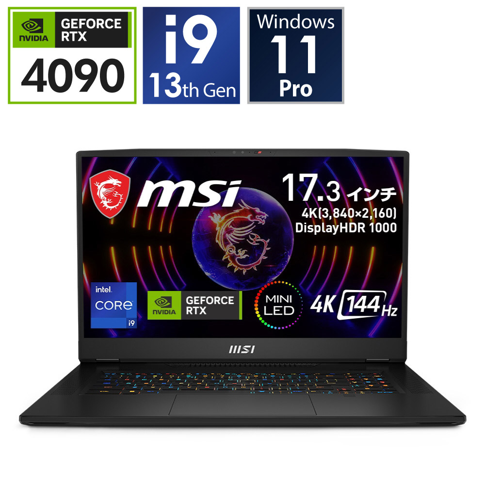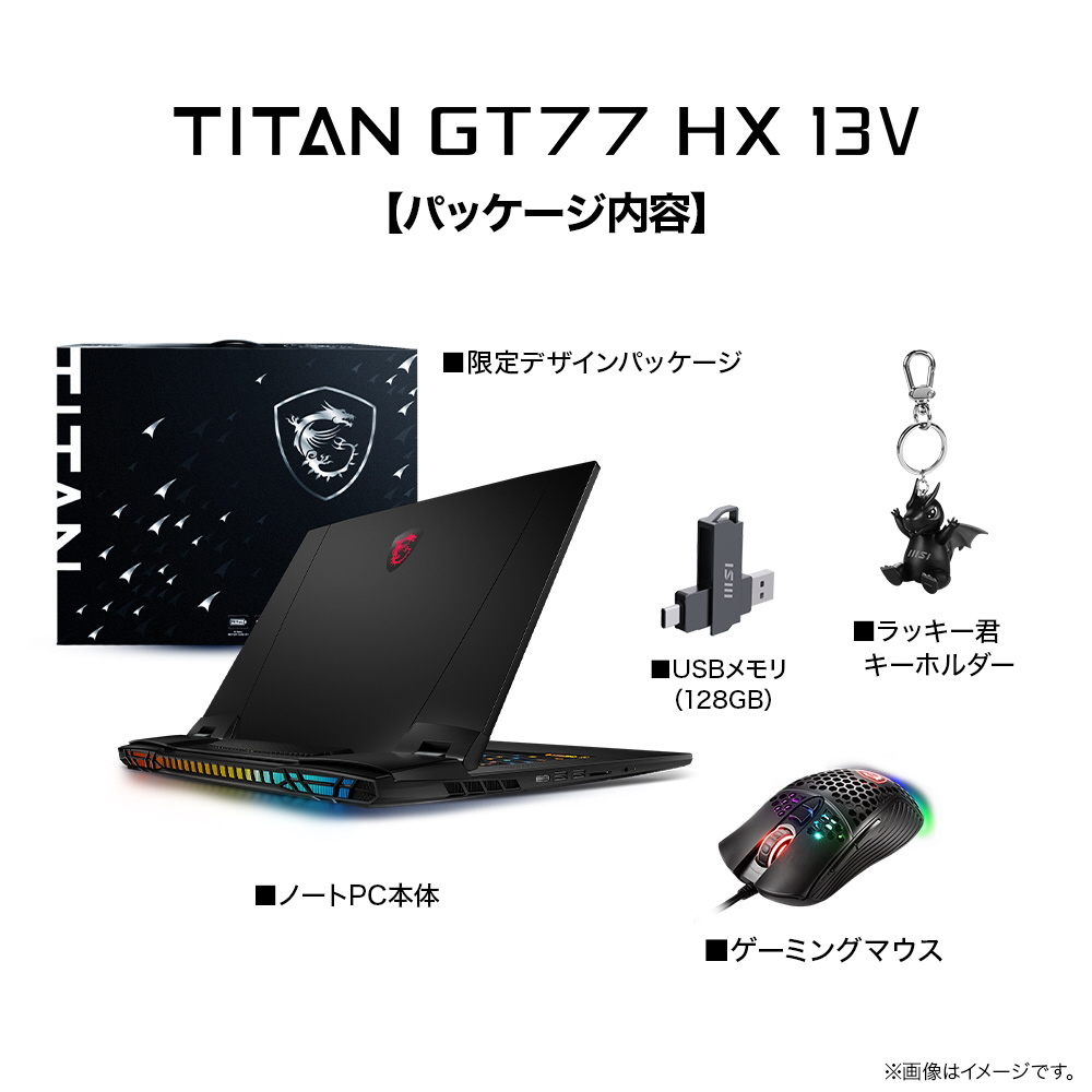 | 商品名 | Titan-GT77-HX-13VI-1003JP ゲーミングノートパソコン コアブラック [RTX 4090/17.3型/Windows11 Pro/intel Core i9/メモリ:64GB/SSD:4TB/英語版キーボード2023年2月] |