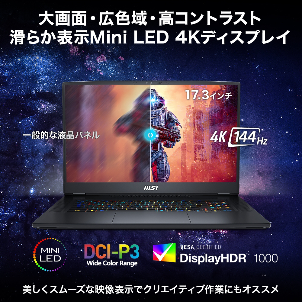 ■17.3インチ、4K(3840×2160)、DCI-P3相当