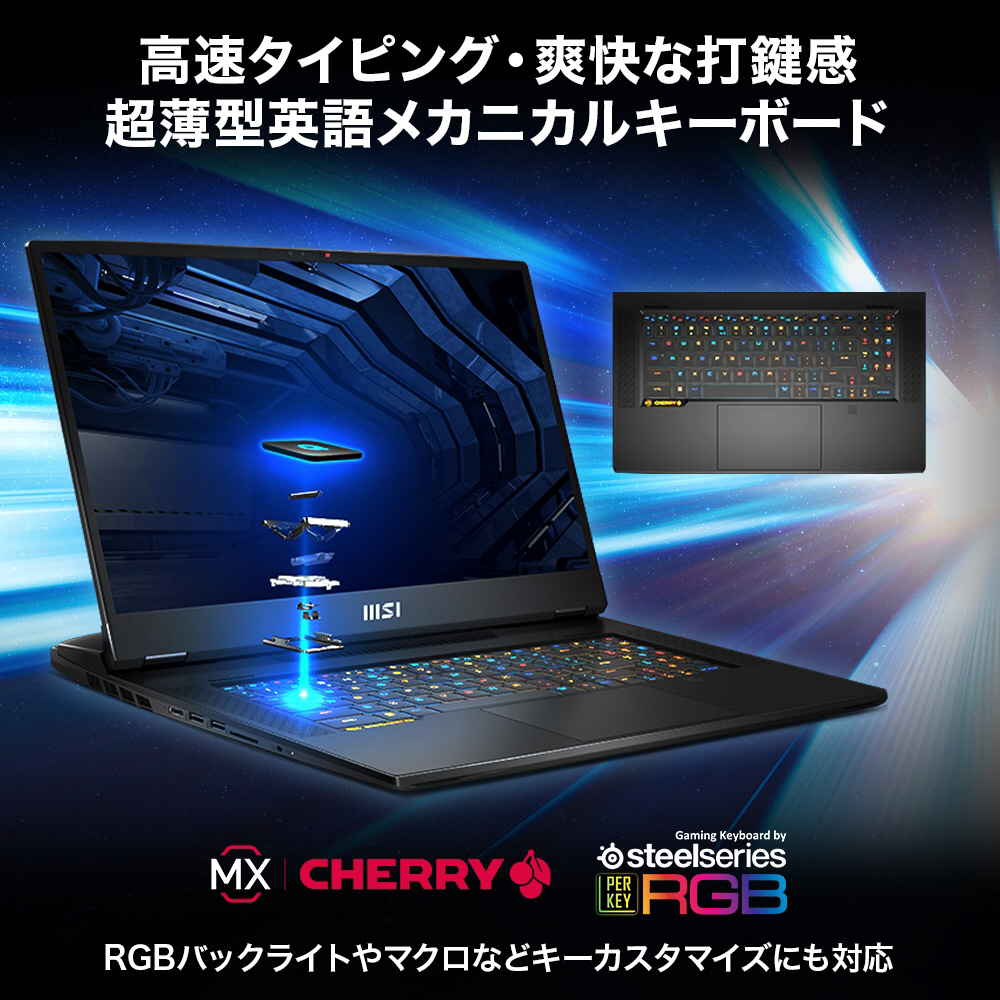 MSIノートPCシリーズで唯一、最大128GB(32GB ×4)メモリを搭載できるTitan GT77シリーズが第13世代インテル Core i9 プロセッサーとNVIDIA GeForce RTX 4090 Laptop GPUを搭載してパワーアップ!!ウルトラハイエンドゲーマー、VRを活用したデモンストレーション、3D CADによる設計・デザイン、研究・開発など従来では大型デスクトップPCを必要としたユーザーにノートPCという選択肢を提供。