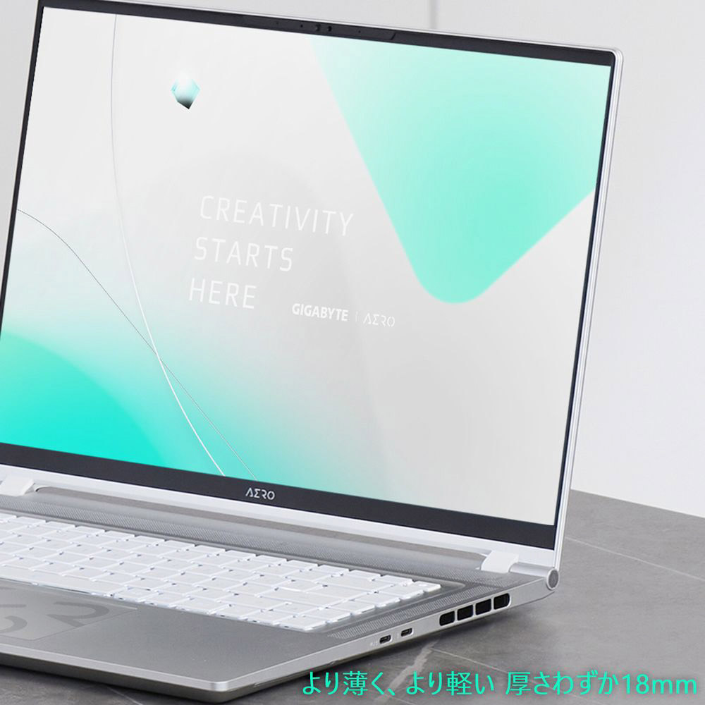 あなたのクリエイティビティを解き放つ AERO 16 OLEDクリエイターノートPCは、プロのデザイナー、クリエイターのために設計されています。16:10の薄型ベゼル4K+有機ELディスプレイは、X-Rite 2.0工場別色校正、Pantone Validated色校正を取得し、複数の第三者認証機関から認定を受けています。さらに、、テュフ・ラインランド社の低ブルーライト、Eyesafe 2の基準もクリアしています。総厚はわずか18mm。