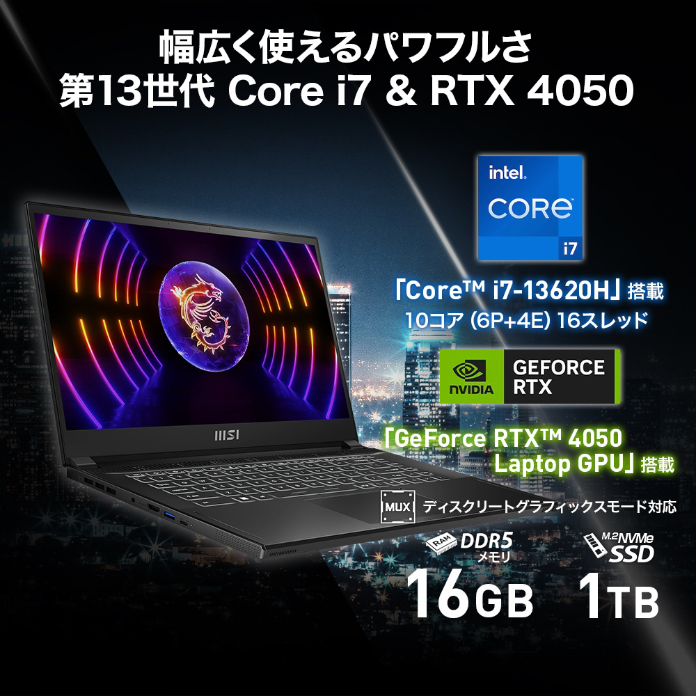 ゲーミングノートパソコン TEALTH 15 A13V ブラック STEALTH-15-A13VE-769JP[RTX4050]