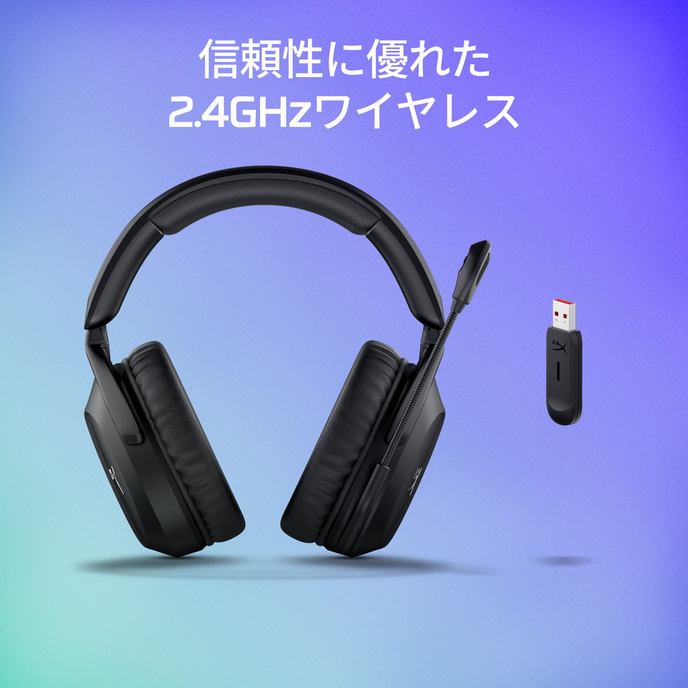 HyperXならではの快適さと信頼性の高い2.4GHzワイヤレス接続が特徴のゲーミングヘッドセット