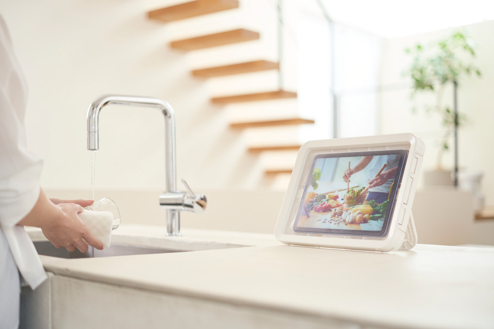 大事なタブレットを水没のリスクからIPX7相当の防水性能で守ります。水に濡れやすいお風呂やキッチン、アウトドアでタブレットをお楽しみいただけます。